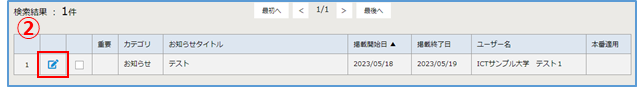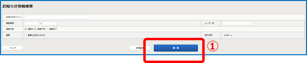 1.トップページ「お知らせ情報検索」>検索条件を入れ「検索」ボタンをクリックします。
