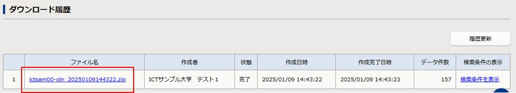 3.ダウンロード履歴のファイル名のリンクをクリックします。