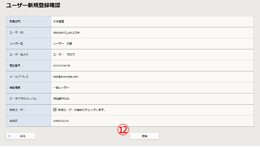 入力内容を確認し、「登録」ボタンをクリックすると最終確認画面が表示されますので、問題なければ「はい」をクリックして完了します。