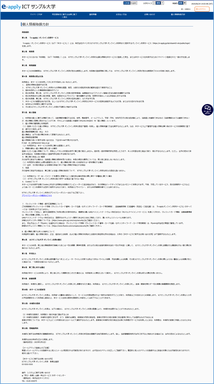 利用者側マイページの設定は事前のヒアリング内容をもとにe-applyサポート事務局で実施します。