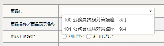 商品ID の項目では登録済みの商品が選択肢として表示されるようになっています