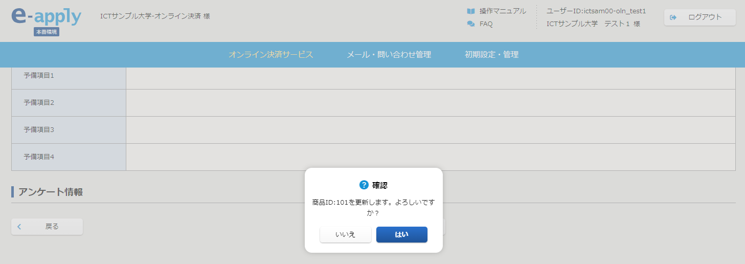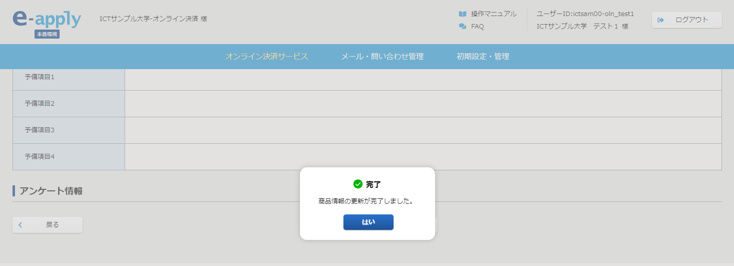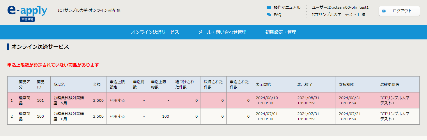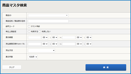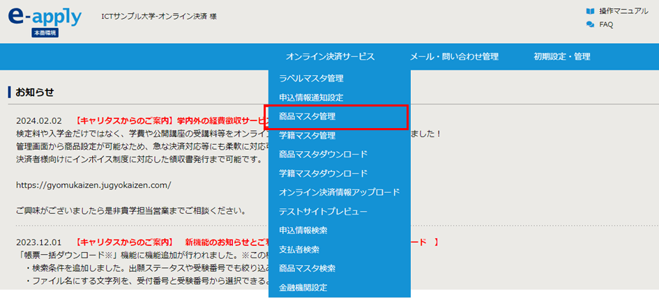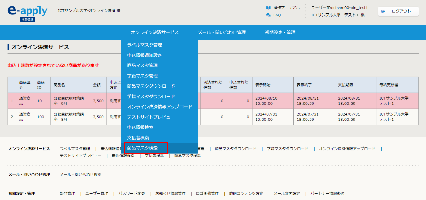 管理画面TOP>オンライン決済サービス>商品マスタ管理