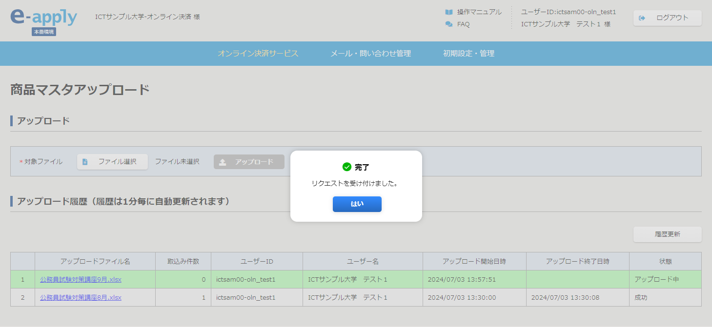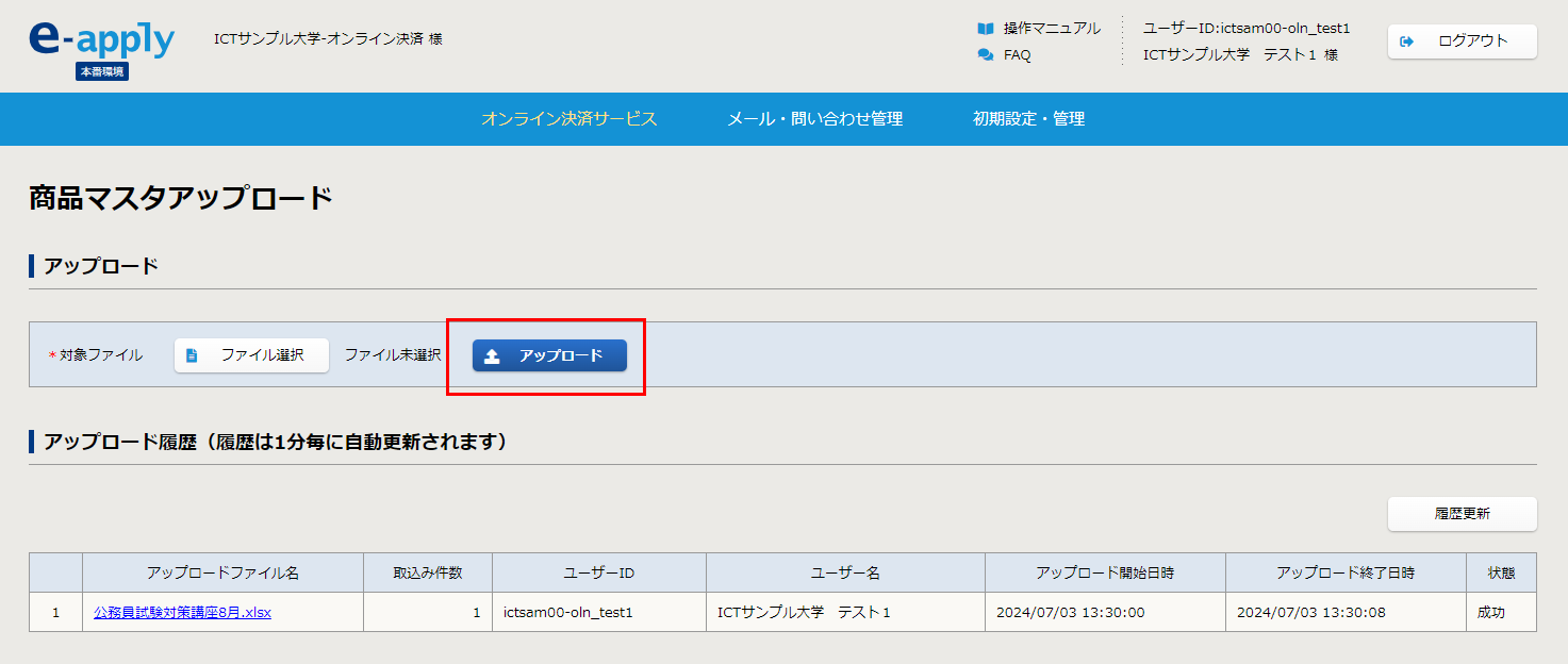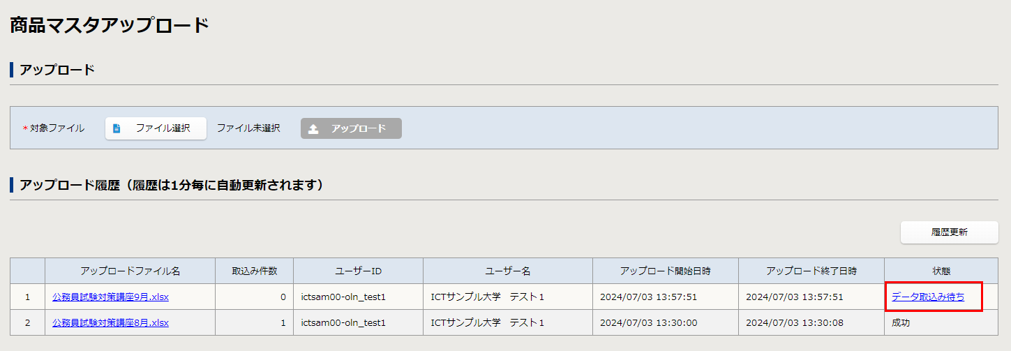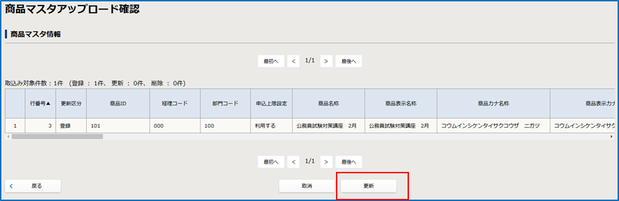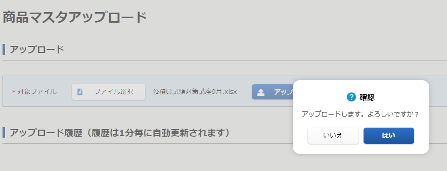 ※商品受付期間内の場合は取込みNGになります。その場合は、一度商品の受付を中止した上で、商品マスタをアップロードしてください。