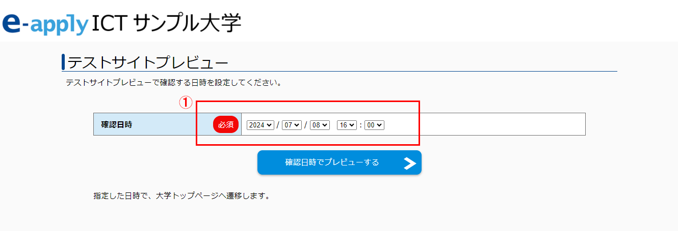 6.表示日時を設定し、「確認日時でプレビューする」ボタンをクリックします。