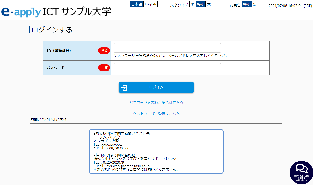 学生・ゲストユーザーが利用する実際の画面と同じ環境です。